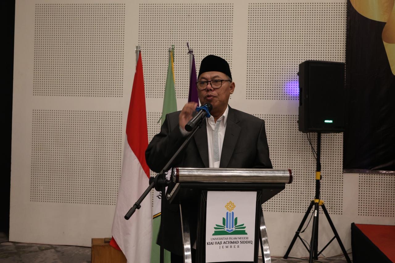 Dalam sambutannya, Dekan FEBI UIN KHAS Jember, Prof. Ubaidillah, menegaskan pentingnya menjadikan nilai-nilai luhur KH. Achmad Siddiq sebagai fondasi etik dan spiritual dalam kehidupan profesional maupun sosial. Menurutnya, keberhasilan akademik harus berpijak pada integrasi antara iman, ilmu, dan amal, sebagaimana spirit keislaman dan keindonesiaan yang diwariskan oleh KH. Achmad Siddiq.